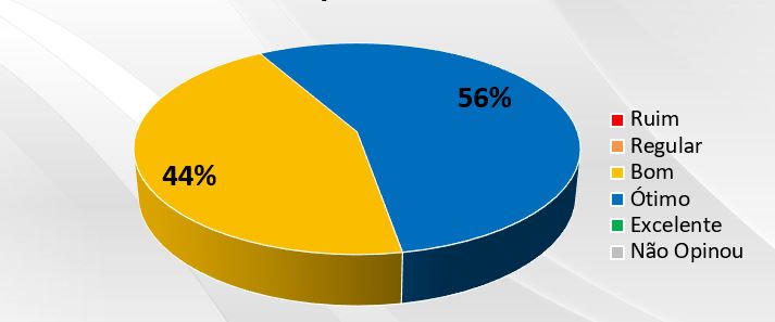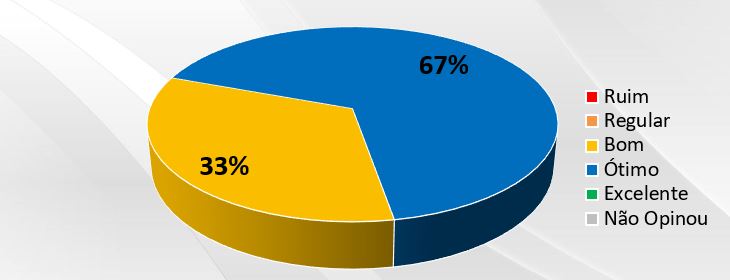 Quando questionados sobre como avaliam a qualidade dos serviços prestados pelo GRUPO CRIAR, 100% dos Clientes atendidos avaliaram os serviços com uma qualidade Ótima e Boa! Além de 100% considerarem que a prestação de serviços atende às suas expectativas.